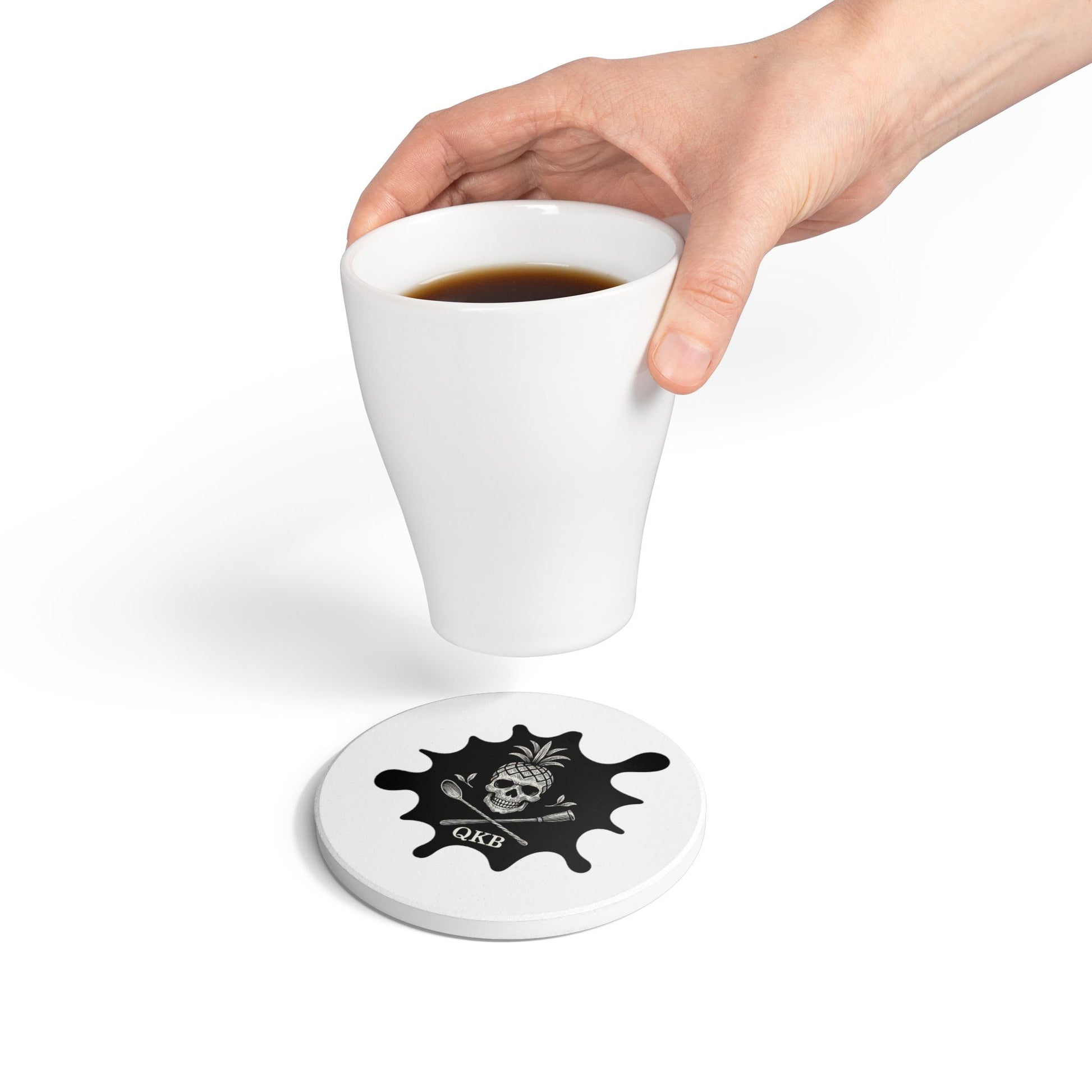 QKB Skull & Pineapple Ceramic Coaster | Unique Drink Coaster for Home Bar, Halloween Decor, Gift for Chefs, Party Favor, Kitchen Accessory